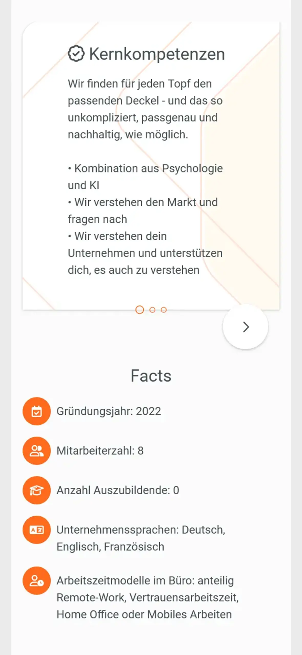 Überblick über das, was dein Unternehmen auszeichnet. Zeige deine